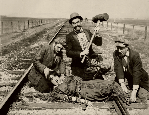 PS say what you like about the silent era, but you always knew who the villains were – and they meant business when they tied a damsel up! No comfy chairs – and just LOOK at what they’re using to hold down poor Mabel! Oh, who will succour her? Surely there is no escape! (Nyah-hah-haaaa!)
