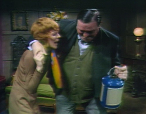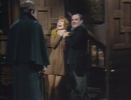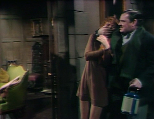 1. The BIG blooper that appears here and isn’t fixed in the Monday recap is Barnabas’ loss of his coat and cane when he and Julia return to Earth-1. Unless the coat and cape didn’t make it through the switch back ad they’re still back in PT. If he never wears it again does that mean this IS not a blooper?
