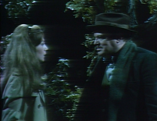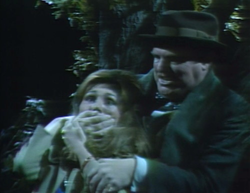 Then it’s Quentin’s job to get Maggie to safety, while Barnabas picks up Julia in the woods. Julia’s a wild card in this construction — neither the action hero nor the imperiled ingenue — so they have to do an extra little scene to get her involved with the search for Roxanne. Ordinarily, Julia would be the one driving, but today is not a good day for the females.