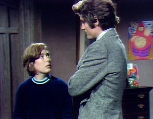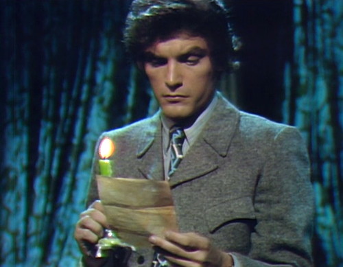 8. The scene between Quentin and David, like the whole Re-Haunting of Collinwood story, makes it abundantly clear that the writers were counting on the viewers not remembering the previous year’s episodes. But the actors seem to be operating on a different idea. When Maggie tells Carolyn that it isn’t good to be in love with someone who’s dead, Carolyn gives her a look, a “You don’t know the half of it, sister” look. At this point they’re peddling the idea that Maggie is hung up on Barnabas, and they’ve never told us that Carolyn forgot that Barnabas was a vampire. She clearly remembered her experience with him when he was first cured in 1968, but it remains ambiguous from that point on whether her memory vanished or she still knows and has just decided never to bring it up. So I’d say that look counts as an Easter egg for longtime fans.