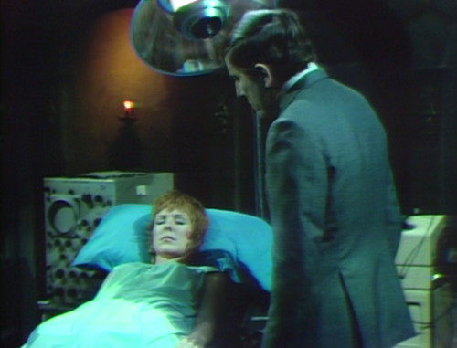 8. The scene between Quentin and David, like the whole Re-Haunting of Collinwood story, makes it abundantly clear that the writers were counting on the viewers not remembering the previous year’s episodes. But the actors seem to be operating on a different idea. When Maggie tells Carolyn that it isn’t good to be in love with someone who’s dead, Carolyn gives her a look, a “You don’t know the half of it, sister” look. At this point they’re peddling the idea that Maggie is hung up on Barnabas, and they’ve never told us that Carolyn forgot that Barnabas was a vampire. She clearly remembered her experience with him when he was first cured in 1968, but it remains ambiguous from that point on whether her memory vanished or she still knows and has just decided never to bring it up. So I’d say that look counts as an Easter egg for longtime fans.