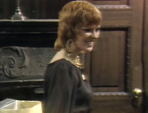 1. Roxanne’s hair is cut like Jane Fonda’s, but her coloring, the shape of her chin, and the shape of her nose all make her look distinctly like Julia. I wonder of they were having a bit of fun with the fans, casting an actress who looked enough like Grayson Hall to be her daughter as Barnabas’ latest hopeless crush.