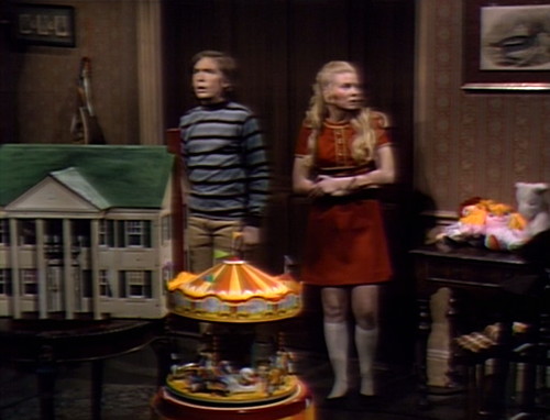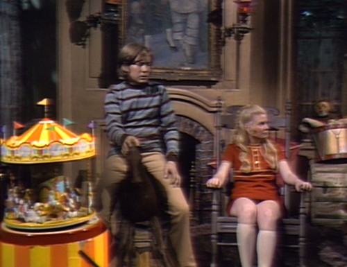 1. Agreed – after watching the “Cousin David…MUST die!” (Dun dun duuuuun!) storyline, this playroom silliness would have worked so much better when David Henesy was younger; or with younger children (perhaps three Stokes orphans). Then David and Hallie could be trying to figure out why the wee’uns were suddenly acting like wierdos while discovering their own first groovy romance.