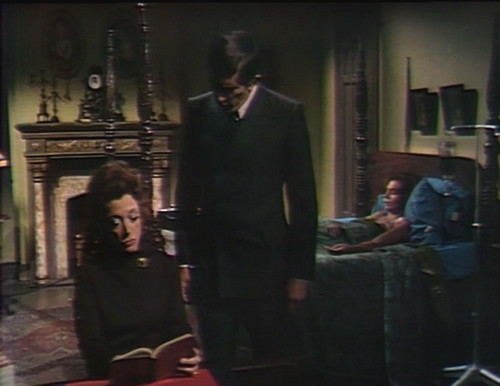 13. Julia leaves the room and Barnabas tries to summon the other vampire. The vampire doesn’t show but instead Adam enters the room wearing an ascot and a tweed jacket. Apparently he and Roger have taken up residence in a neighboring county…