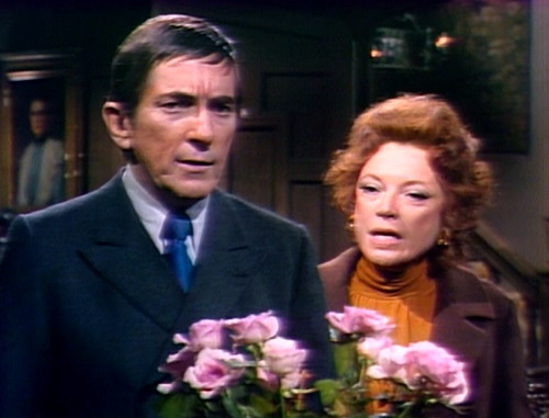 Because here comes Carolyn, still mildly possessed, and Barnabas and Julia have forgotten that two episodes ago, they were saying that knowing Pansy Faye was the key to disrupting Gerard’s whole operation. They just watch her, puzzled, as she floats into the room and announces that a) David and Hallie are gone, and b) the children are alive and well. Then she brushes off their follow-up questions, and goes upstairs to bed.