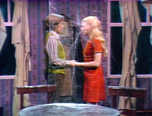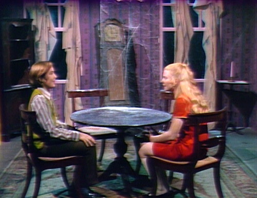 6. We’ve taken to turning the color off on the television when we watch Dark Shadows, and I can say that it really helps. For all the weaknesses of these episodes, in black and white they have a spooky atmosphere and an elegant visual composition. Looking at the color screen caps in this post, I can’t imagine much of that carrying through.