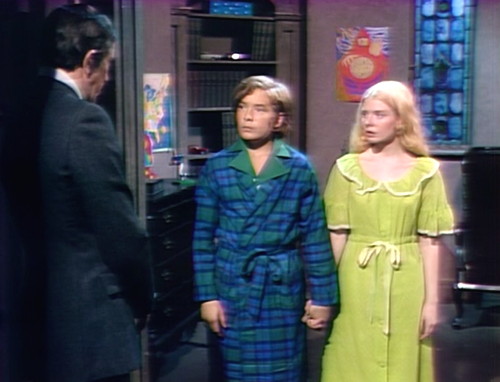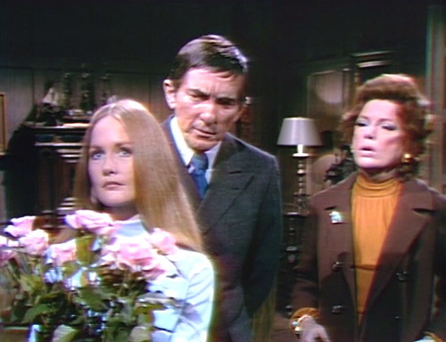 Because here comes Carolyn, still mildly possessed, and Barnabas and Julia have forgotten that two episodes ago, they were saying that knowing Pansy Faye was the key to disrupting Gerard’s whole operation. They just watch her, puzzled, as she floats into the room and announces that a) David and Hallie are gone, and b) the children are alive and well. Then she brushes off their follow-up questions, and goes upstairs to bed.