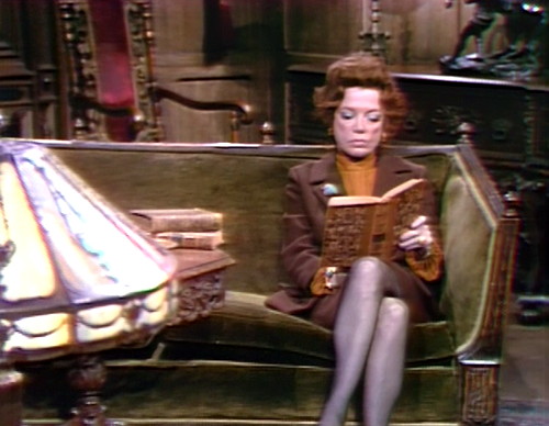 Part of the problem is that they’re having a hard time following up on clues. At the end of last week, they realized that Carolyn has been possessed by Leticia Faye, a possible ancestor of possible Cockney songbird Pansy Faye, who they knew posthumously in 1897 through the medium of another Nancy Barrett character. Don’t worry if you can’t get your head around this particular plot nugget, which relies on a Cockney showgirl dynasty that bounces back and forth between Collinwood and Cheapside every generation or so. It doesn’t really matter.
