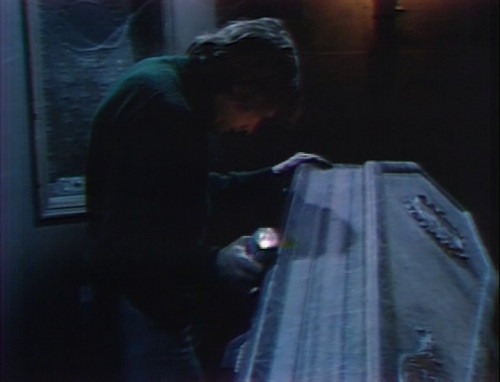 You can tell that we’re approaching that last-six-months mark, because they’re currently doing scenes from House of Dark Shadows as if they’re part of the show. For today’s episode, they drag poor Willie Loomis back out of retirement, so he can shine his flashlight through the door of a darkened crypt, and find the coffin of the vampire who’s killing Maggie Evans. They might as well put up a chyron saying “House of Dark Shadows, currently in theaters”.