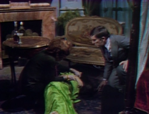 In act 1, Barnabas has to hustle from his scene with Sebastian behind the bookcase to his next scene with Daphne in Josette’s room, a transition that he has only fifteen seconds to achieve. As the first scene fades out, you can see Barnabas hurrying behind Sebastian to get to his next mark.