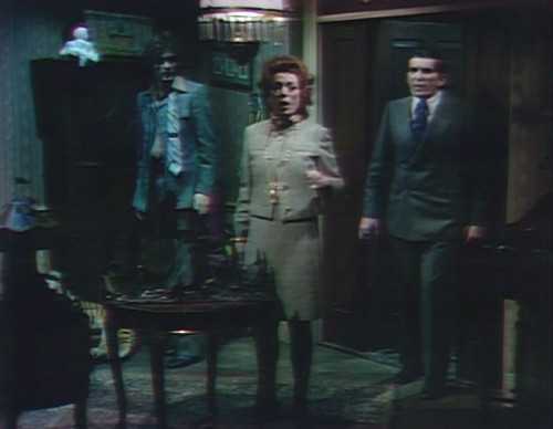 If you count the silent zombies who don’t appear in the credits, there are 13 actors in this episode — the most people in any episode of Dark Shadows. In act 2, there’s a scene that squeezes six people into the tower room, although you can’t see them all in one shot because the tower room set isn’t big enough.