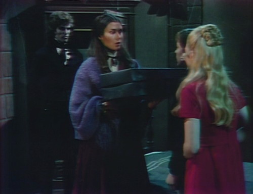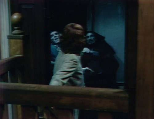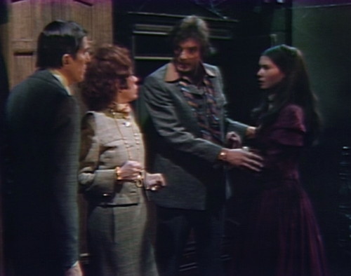 If you count the silent zombies who don’t appear in the credits, there are 13 actors in this episode — the most people in any episode of Dark Shadows. In act 2, there’s a scene that squeezes six people into the tower room, although you can’t see them all in one shot because the tower room set isn’t big enough.