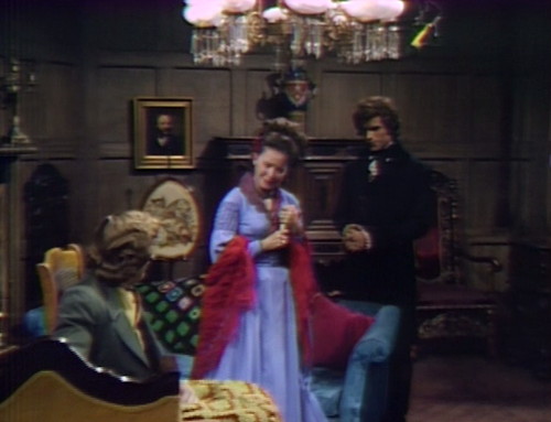 Well, for one thing, they get to start over with a whole batch of new characters and situations, which always brings out the best in Dark Shadows. Here’s the introduction of cousin Flora, who drifts into Collinwood on a cloud of sentiment.