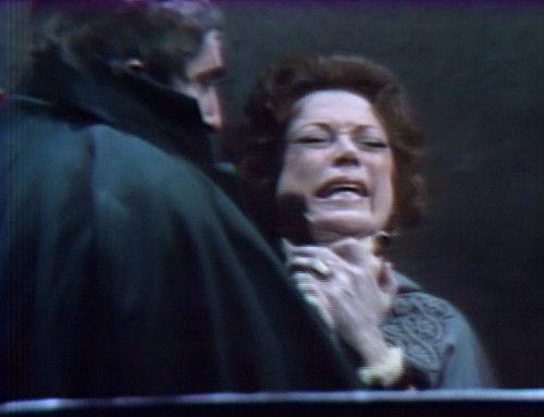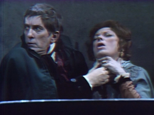 4. Let’s remember that the blocking fail is because the show has become dramatic again instead of people sitting around reading old books. So yes, a perfect Dark Shadows scene–mistimed, over-ambitious, and with intended and unintended sources of suspense.