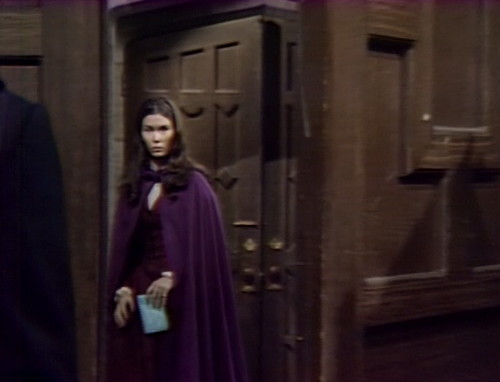 Time-tossed vampire Barnabas Collins is leaving his family’s mansion, when he catches sight of a pretty young woman who looks like someone from Charlie’s Angels. This is Daphne, the mystery ghost who is destined — a hundred and thirty years from now — to collude with an angry fire god to destroy Barnabas and his entire way of life.