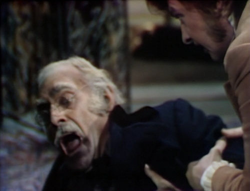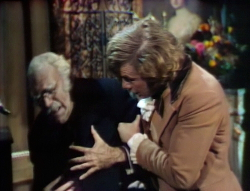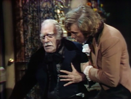 What’s striking is how in Dark Shadows he wasn’t yet 50, but played characters 80 and up and could make them seem so real and natural even without the aid of Dick Smith. I realize from those screencaps above they seem to have penciled in some age crevices across the forehead, but I prefer to think they were just accents — when he tilts his head back in Otis Green’s death throes to open his mouth in agony, you can see that he already has a full set of dentures.