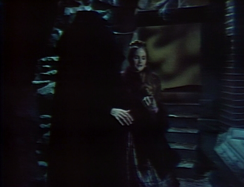 The fan-written Dark Shadows 1840 Concordance, which I wrote about in Episode 1008: This Terrible Truth, incorrectly listed Grayson Hall as playing the ghost of Harriet Collins, and I believed it for a long time. The 1840 Concordance was published in 1987, and was based on notebooks, memories and off-air audiotapes; the 1840 episodes weren’t available to fans until it was released on videotape in 1992, and then broadcast on the Sci-Fi Channel in 1994. The ghost of Harriet doesn’t speak in this episode, so they didn’t know who played her. The idea that Grayson Hall played Harriet comes from a clue in episode 1111, when a raving Daniel chokes Julia, thinking that she’s Harriet.