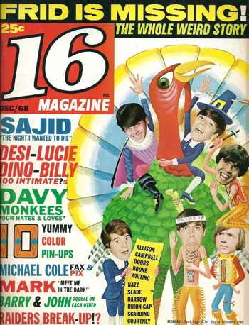 Jonathan Frid’s name first appeared on the cover of 16 in August 1968, and a month later, his picture was on the cover, crowding out the Monkees and Sajid Khan and Mark Lindsay from Paul Revere & the Raiders, and all the other forgotten teen idols of the mid-to-late 60s. Over the next six months, every issue had either Frid’s picture, or at least his name.