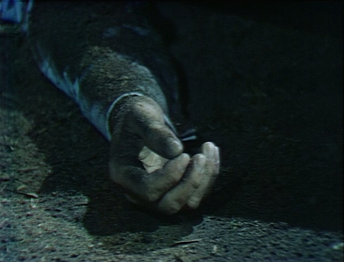 Rummaging around in the wreckage, Barnabas comes across a human arm, sticking out from under a pile of rubble.