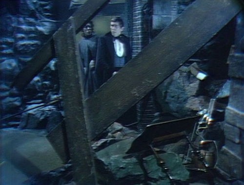 Barnabas and Julia go up the stairs, and once they’re on solid ground, she closes the secret entrance to the ruined crypt.