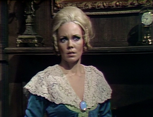 It appears that Lara Parker is as baffled as I am, because she doesn’t know what to do with this scene. She’s playing it completely straight, as if Miranda really is a more or less innocent young woman who got caught up in Judah’s dastardly schemes, and all she wants now is to reject witchcraft and get on a fast boat to the West Indies. When Angelique was in a similar spot in 1795 — questioned by Reverend Trask, and accused by Vicki — Parker knew exactly who she was, and what she was doing. I don’t see that here.