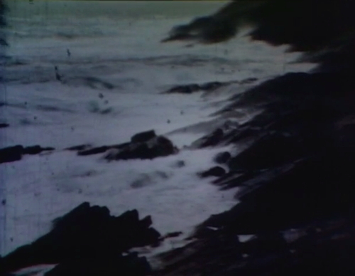 The footage of the sea crashing on the rocks under Widow’s Hill is terribly old and scratched up, plus it’s in black and white. I guess it’s been a while since we’ve been up to Widow’s Hill, they must have mislaid the color footage.