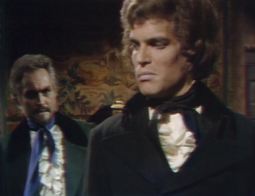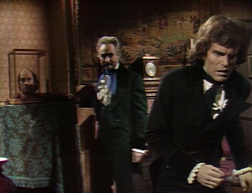 He moves to the fireplace, and rests an elbow on the mantelpiece. “And I know who my enemies are.” He raises an eyebrow. “I live amongst them.” And then he delivers what could have been another attractive smirk, if the Dark Shadows directors still knew how to light and frame a shot.