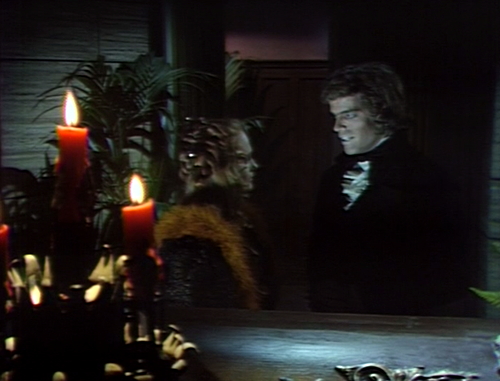 He moves to the fireplace, and rests an elbow on the mantelpiece. “And I know who my enemies are.” He raises an eyebrow. “I live amongst them.” And then he delivers what could have been another attractive smirk, if the Dark Shadows directors still knew how to light and frame a shot.