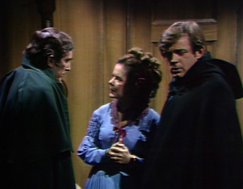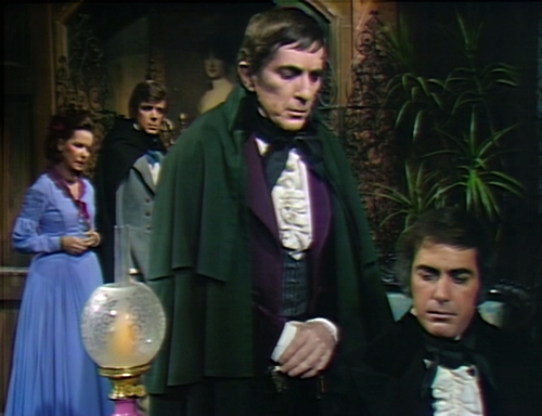 You know, I was hoping to have a nice little picture at the top of the post there, showing Barnabas and Roxanne at war, but there isn’t a single two-shot in the entire sequence. That’s a blindingly weird choice, and it makes you wonder whether the directors remember that they’re shooting a television show. This is a standoff, a showdown, with the show’s lead character squaring off against his former love, with his best friend’s life hanging in the balance, and they refuse to show us where they are in relation to each other.