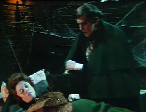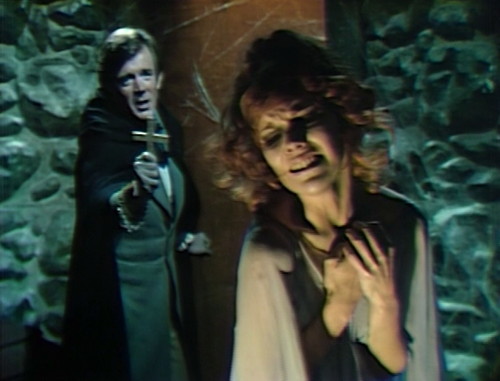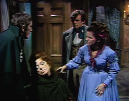 They managed, accidentally, a really disturbing death scene there. They cut away because they clearly couldn’t/wouldn’t do her death on camera, so you just her her anguished screams as she begs her brother for help and calls on Barnabas in desperation. Then they cut back and she’s just gone.