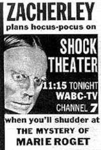 Best of all, Shock Theater was presented by local “horror hosts”, stylized characters who would introduce the film from a set dressed to look like a crypt, or a mad science laboratory. The best-known of the original hosts was John Zacherle, the Philadelphia host who pioneered the technique of inserting himself into the film — cutting away from the movie for a shot of the host, as if he were participating in the scene. Zacherle’s character was called Roland in Philadelphia and then Zacherley, when he moved to a New York City station. Before and after commercial breaks, Zacherle would perform skits, talking to his wife My Dear — who was only seen as a hand coming out of a coffin — or scolding his assistant Igor, who was housed in an off-screen cage.