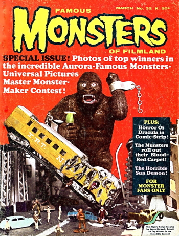 7. I collected the entire set of Aurora monster models, and I still have them all in a glass cabinet in my home, protected from dust and the elements. They were and are a treasured part of my childhood. I’m debating, however, whether I want to try to sell them in a year or two when I move off to our “retirement home.” I also subscribed to Famous Monsters of Filmland for a year or two. Great stuff!