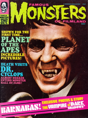 Unsurprisingly, Famous Monsters embraced Dark Shadows, and Barnabas appeared on the cover three times: once in October 1968, the second in November 1969, and then a House of Dark Shadows feature in February 1971, followed by a Night of Dark Shadows feature in January 1972.
