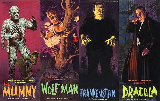 And then there was this popular series of plastic model kits from Aurora Plastics Co, which allowed kids to assemble and paint their own 1/8 scale Universal Monsters.