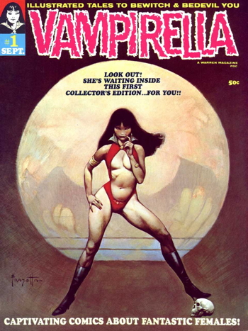 Then they made some more bad choices. James Warren, publisher of Famous Monsters of Filmland, introduced a new comic book in late 1969 called Vampirella, about a busty and nearly-nude vampire vixen created by Famous Monsters editor Forrest J. Ackerman. Warren wanted Aurora to produce a Vampirella model kit, which would be cross-promoted in both magazines.