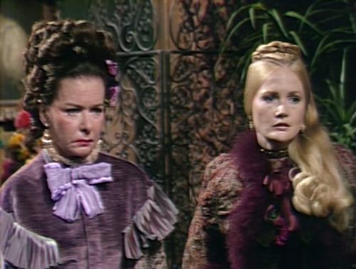 1. I just found it amazing that Tony Peterson could become the over-the-top Reverend; like so many others on DS, a wonderfully versatile performer. But it does seem that with each succeeding foray into the supernatural, the ‘edges’ were worn off the characters, or the actors were playing basically the same thing again. Abigail and Minerva were almost interchangeable, as were all the Trasks. Not just because the same actor was doing them – look at the variety that Thayer David brought to his roles! Grayson Hall had some good stuff, too, as did Louis Edmonds and Joan Bennett; Nancy Barrett, John Karlen, even Kathryn Leigh Scott gave good, varied performances with their characters at the outset, but the 1840s don’t really seem to be giving much that’s radically different anymore – though in truth, what could they do to make their parts stand out? Barrett is just reprising Pansy Faye, Karlen’s Desmond is pretty much PT William. Joan Bennett is giving more lightness to Flora than any of her previous characters had, and Big Lou gave some distinct differences to Daniel (though with a definite flavour of PT Roger – better keep the hatpins away from HIM).