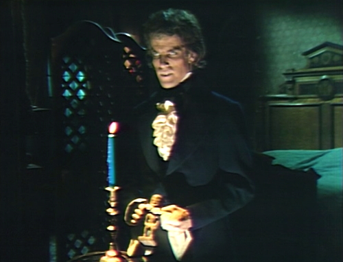 The Trask/Barnabas vendetta is always fun to revisit in each time band that Barnabas travels to, but with each successive Trask appearing more unprincipled as they go along. Here in 1840, the makeup department is applying the same sinister black shading around Lamar’s eyes that made Barnabas seem so dark and distant upon his arrival in 1967. In a sense, over the course of the series the roles between the two characters become reversed.