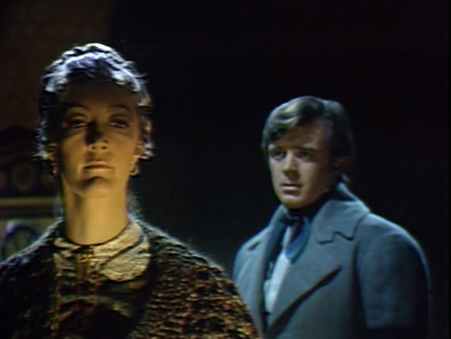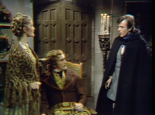 There’s not really anywhere to go after finding an unexpected gold mask, so in walks Edith Collins, a soap vixen played by somebody who used to be on Dark Shadows. Edith’s husband Gabriel is confined to a wheelchair, and Edith doesn’t like him, so every once in a while she slips away from Collinwood and walks over to Rose Cottage, for a secret rendezvous upstairs in Gerard’s room. Randall and Edith both treat her entry into a man’s bedroom as scandalous, although I have to imagine that at some point the three other people who live at Rose Cottage must have seen her enter the house and slip upstairs for extended periods. Who let her in?