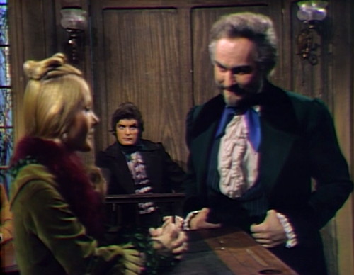 It’s Christmas Eve 1970, and the tidings aren’t as comfortable or as joyful as you might wish. In-universe, Gerard Stiles, possessed by the will of the legendary warlock Judah Zachery, is himself in possession of the Collins family estate. If allowed to go unchallenged, this will result in the destruction of Collinwood, one way or another, which is a shame, because I’m not done looking at it yet. Out-of-universe, this is the last Christmas that Dark Shadows will ever see, because this trial storyline is ruining everything.