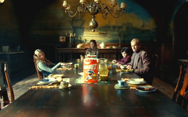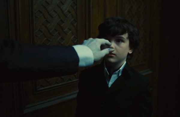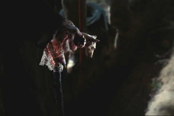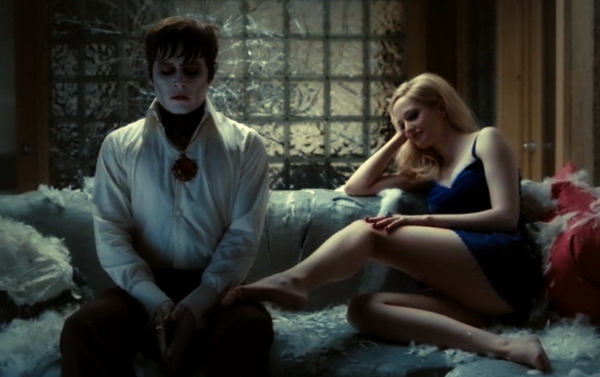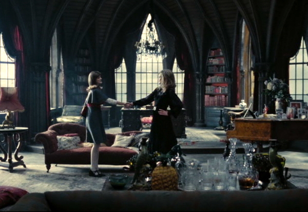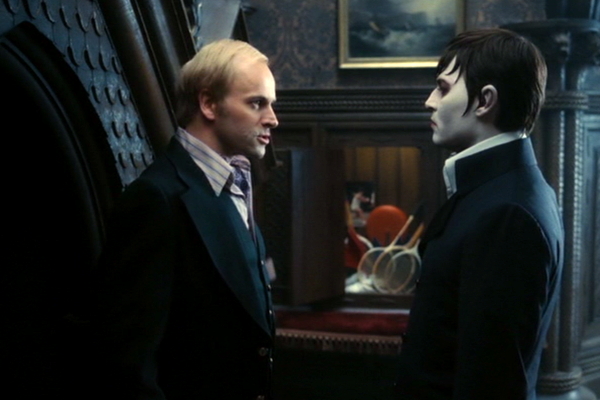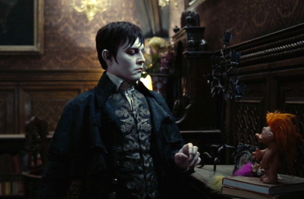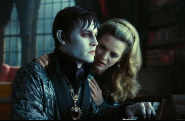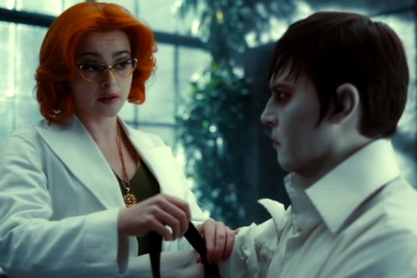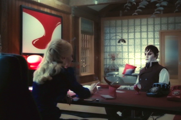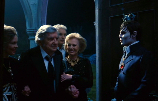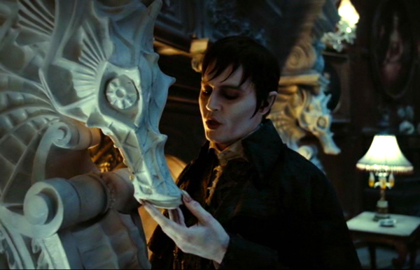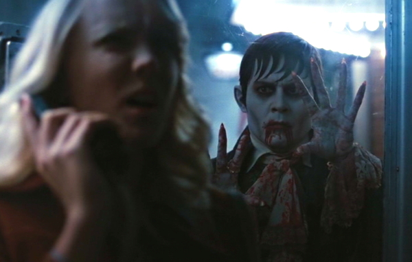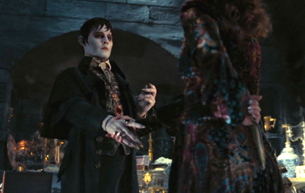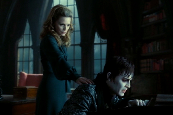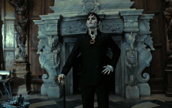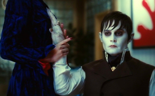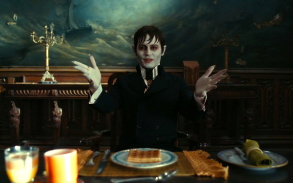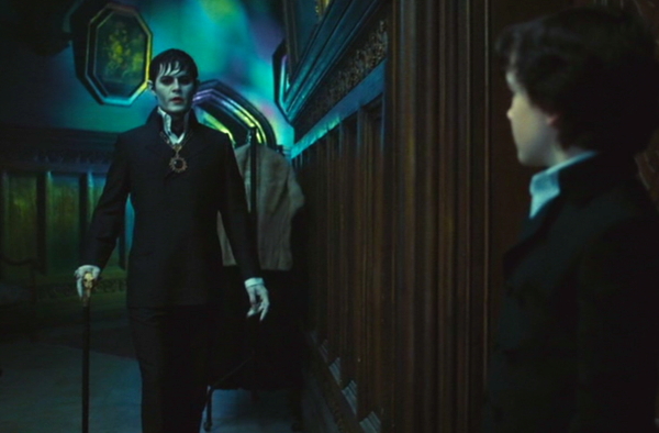 This was Burton’s idea — he insisted on it, even when Depp was unsure. Burton and Depp both talk about how important the long fingers are to the character, because it changes the way that he touches and experiences things. There are endless moments in the film of Barnabas running his fingers along whatever’s in sight, to justify the decision. I disagree with Burton and Depp on this. I think it’s weird for the sake of weird, and if it was in my power to ask for a recount, I would.