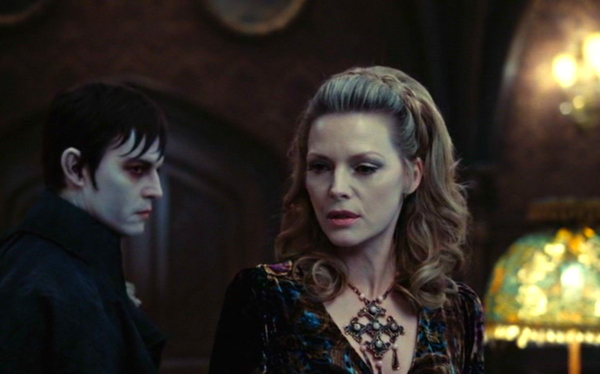 Pfeiffer was the other legit Dark Shadows fan in the cast. She says that when she found out about the project, “I got so excited, I did something I never do. I basically grovelled for a part in the movie. I felt so uncomfortable but I knew I would kick myself if I didn’t, because I know how these things are, people are attached before you even know about it, so I thought I really have to do this.” She got the part. She reportedly watched the show in her trailer and in the makeup chair, and immersed herself in the true weirdness of the series.