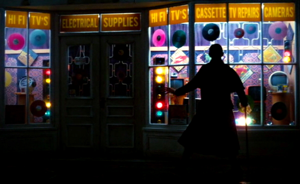 I absolutely love this Collinsport; I think it’s cool and just a hair’s-breadth shy of convincing, a slice of Burtonesque artificial dream-come-true for Barnabas to skulk around in. I don’t like the fingers and the script has deficiencies, but you cannot fault the sets, the props and the costumes in this movie. They’re delightful, and they’re going to stay that way.