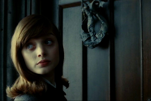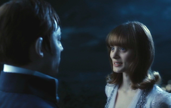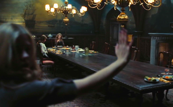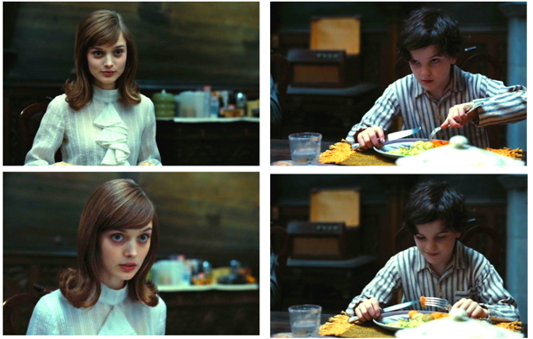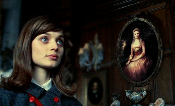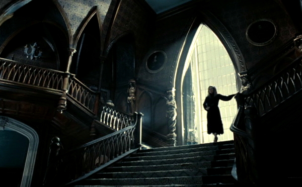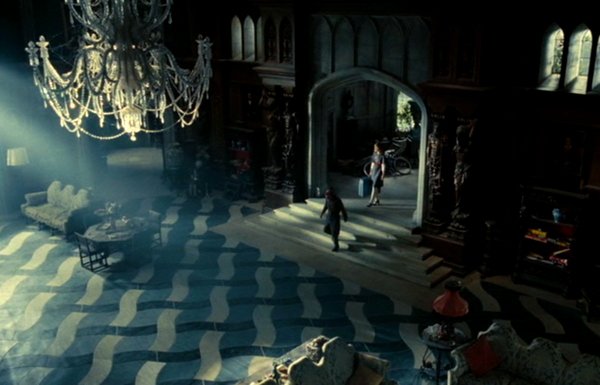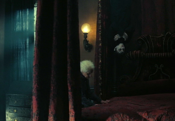 While she descends, Burton gives us a little look at Vicki right next to Josette’s portrait, which is exquisitely lit and framed at an unnatural angle, just to make sure that we recognize it. This is one of those precise Burton details that you can count on when you need one.