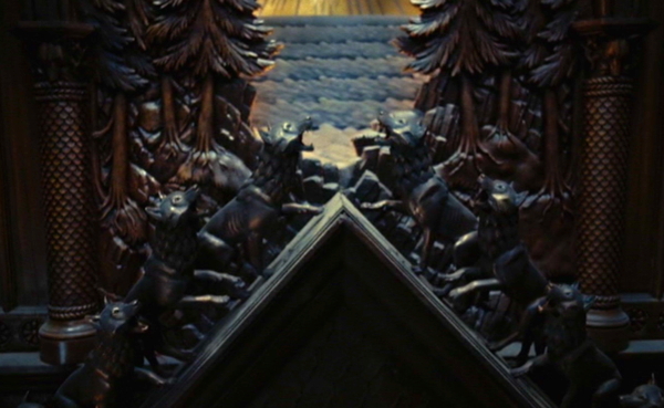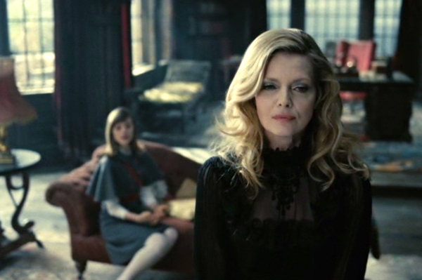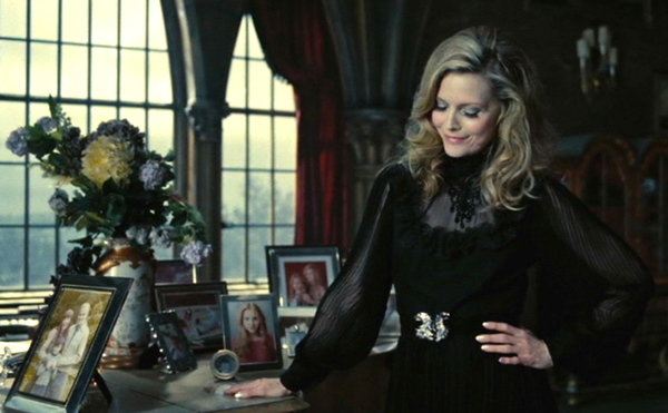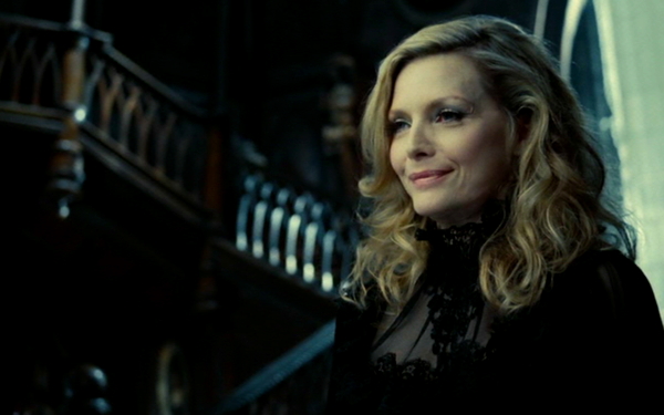 Enter Elizabeth, appearing in near-silhouette at the top of the grand staircase, which looks like the prow of a grand, land-locked ship. And if you think that I love the set a lot, just wait until you hear what I have to say about Michelle Pfeiffer.