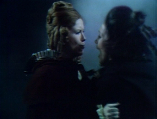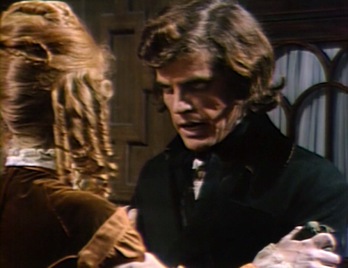So what drives women to blithering madness, is the question on the table today. There isn’t a supernatural element to this, as there usually is on Dark Shadows. She wasn’t possessed by anybody. Carolyn went crazy in 1995, but that was caused by a cataclysmic disruption that killed everyone she loved, following a possession by evil spirits that made her an accessory to the destruction. Millicent lost her mind in 1795, under similar circumstances.