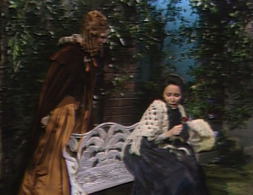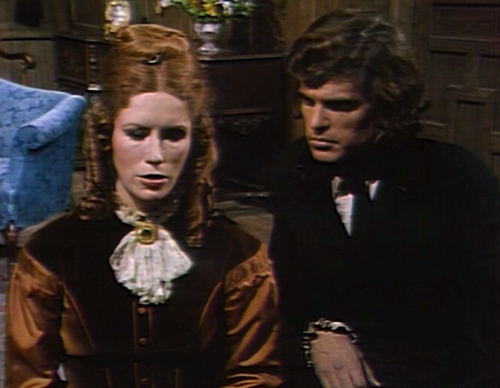 So what drives women to blithering madness, is the question on the table today. There isn’t a supernatural element to this, as there usually is on Dark Shadows. She wasn’t possessed by anybody. Carolyn went crazy in 1995, but that was caused by a cataclysmic disruption that killed everyone she loved, following a possession by evil spirits that made her an accessory to the destruction. Millicent lost her mind in 1795, under similar circumstances.