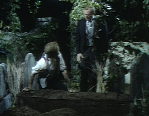 Now, I remember the days when digging up a coffin really meant something on this show, like when Jeff Clark broke in on Peter Bradford’s final rest, to discover that the lights were off but nobody’s home. Back in 1968, that kind of thing would get you a Friday cliffhanger with all the trimmings. Now you can’t even squeeze a commercial break out of it.