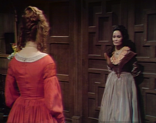 1. No, not Joanna; I thought that was a cool effect, and quite satisfyingly scary. I meant when Gerard carried Samantha in after he found her. They should have used the makeup job they put on Josette after her “mishap” (but they probably wouldn’t have had the time (or budget) for something that involved).