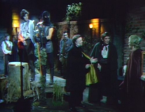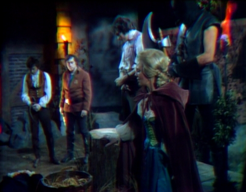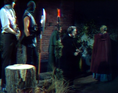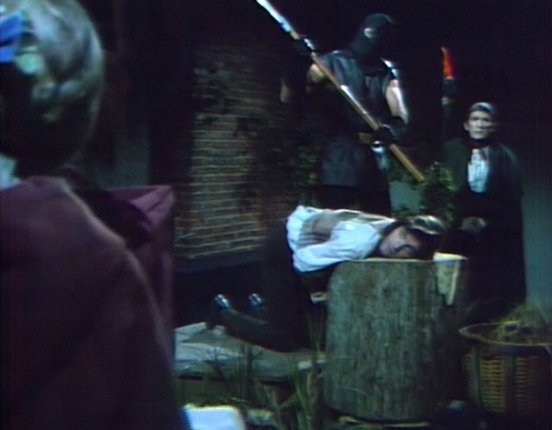 Angelique pauses, and looks at Barnabas. He smiles and nods, expressing his approval for her utterly mad conduct. Then she pauses some more, because we have to get reaction shots from everyone in the room, and that means checking in with Gerard, Desmond, Trask, Quentin and the executioner. The head doesn’t get its own close-up, but it’s pretty much the only quarter we don’t hear from.