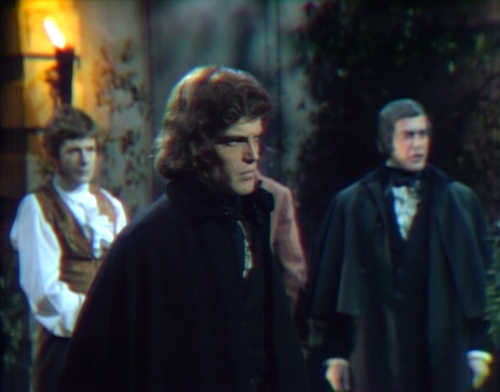 Pre-first #3) Barnabas figures he’s got a bit of time on his hands to catch up on the latest happenings in the Parallel Time band soap opera. Luckily it’s a good episode! Bramwell has returned after a five-year absence to the love of his life, Catherine. Unfortunately, she’s agreed to marry his cousin Morgan (who is happily not there to see them kiss).